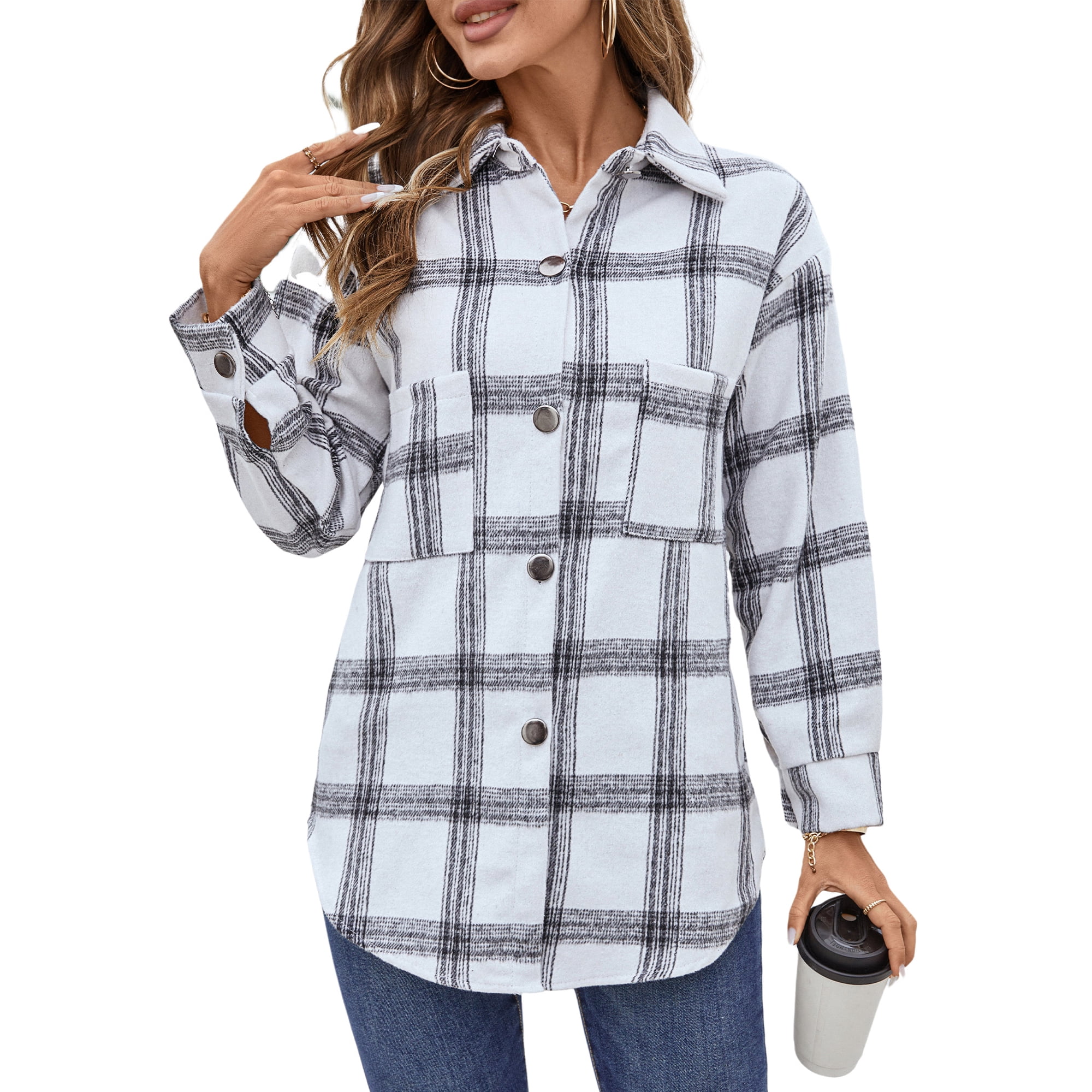 • ❤ 【Match】: This plaid shirts flannel shacket Jacket is perfect for layering or on its own. It’s a stylish statement piece when paired with jeans, leggings, pencil skirt or slacks for a dressed up/dressed down look.